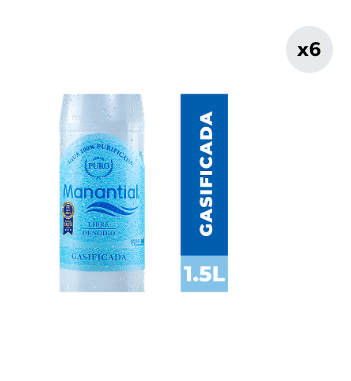 Pack 6 Aguas Purificada Manantial Con Gas Botella 1.5L